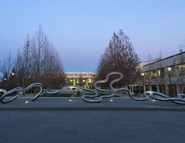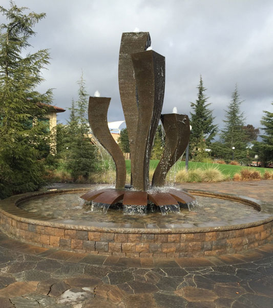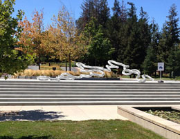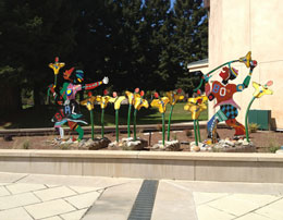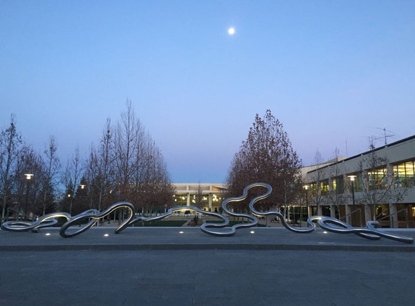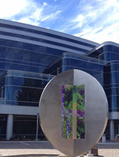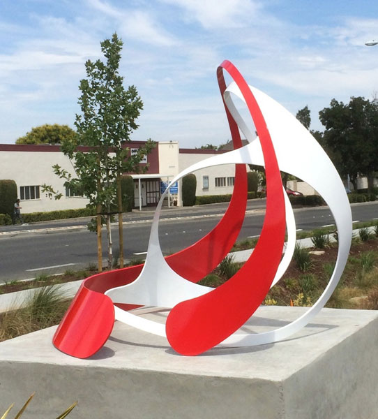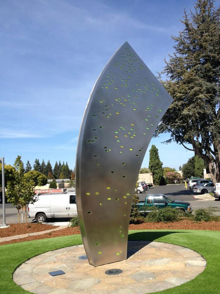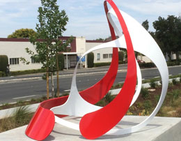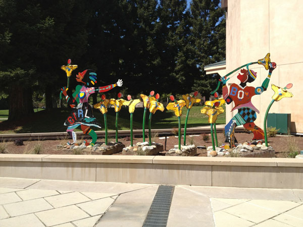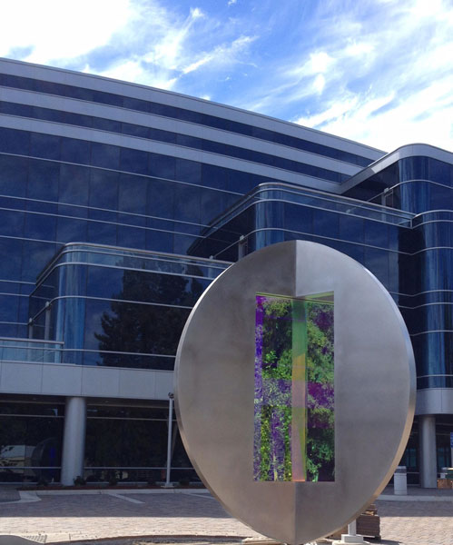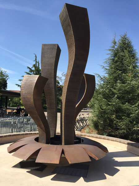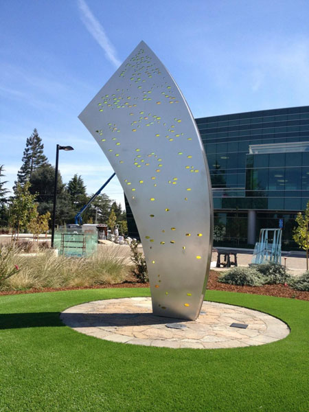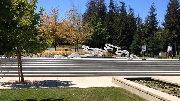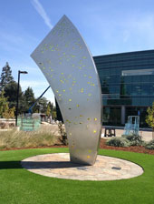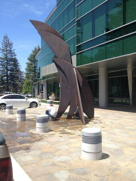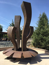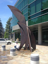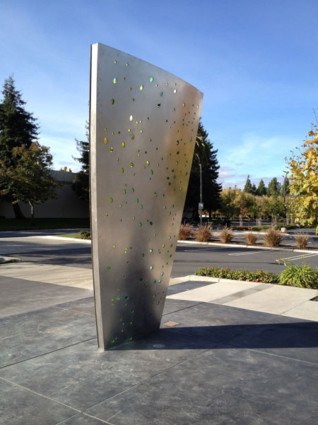"Technically West", by Laddie John Dill, a 20' high Cor-Ten sculpture, alludes to the technological evolution of Silicon Valley. Each element extends higher than the previous, just as the achievements of Silicon Valley have reached greater and greater heights. |