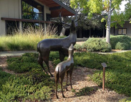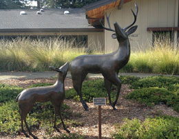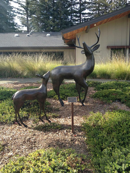 "Star Gazers", by Miles Metzger, a life-size bronze sculpture of a stag and fawn, is placed in front of City Hall and popular with all viewers. |